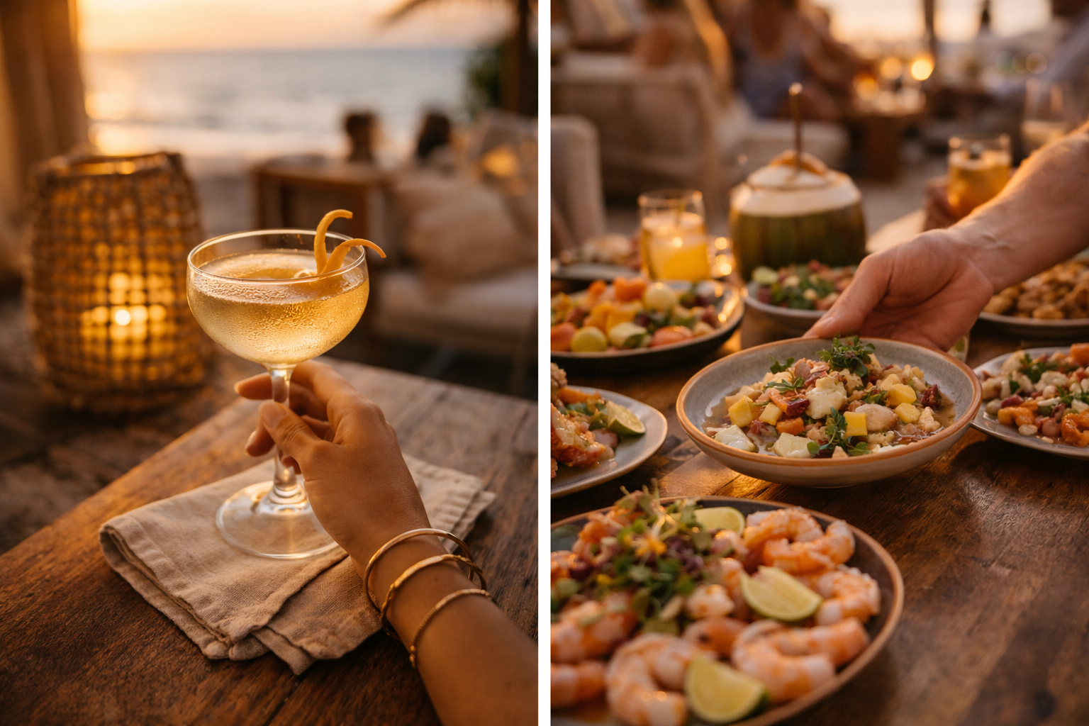 Costa del Mar’s restaurants, beach churuatas, cafés, and bars are pure island indulgence—elevated, but unmistakably local. You smell citrus and sea salt before you even sit down: limón recién cortado, ajo, ají dulce, and the first hit of spices blooming in a hot pan. Fresh fish comes in bright and simple—grilled, blackened, or kissed with butter and herbs—while fried calamari crackles the moment it lands on the table, golden and addictive. Under palm-roof churuatas, the vibe stays barefoot-classy: warm breeze, soft music, chilled glasses, and dishes meant to be shared slowly. Whether it’s a morning café with tropical fruit and espresso, a long lunch by the water, or a sunset bar ritual, every bite and every sip feels curated to taste like Margarita—refined, vibrant, and unforgettable.
